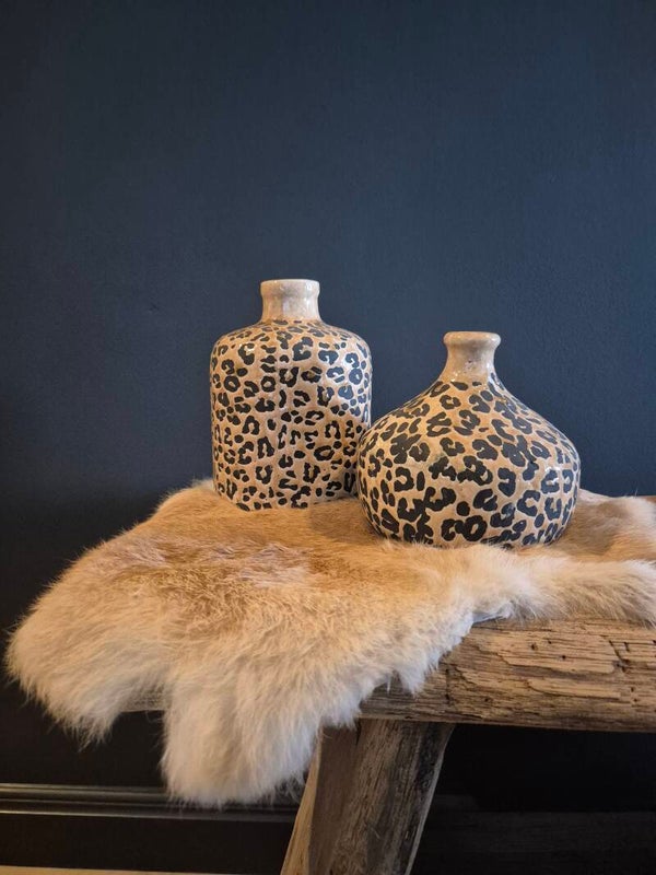 Deze kleine panter pot bewijst dat je met een klein item toch een groot statement kunt maken. De opvallende panterprint in beige en zwart geeft een speelse, stoere touch aan je interieur. Perfect als sierpot voor een hangplantje, droogbloemen of gewoon als decoratief object op een plank, bijzettafel of vensterbank.