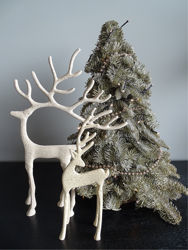 Het rendier straalt rust en klasse uit, en staat prachtig op een schouw, dressoir of als onderdeel van een kerstsfeerhoekje. De subtiele beige tint zorgt ervoor dat het ornament moeiteloos combineert met andere kleuren en stijlen in huis.
