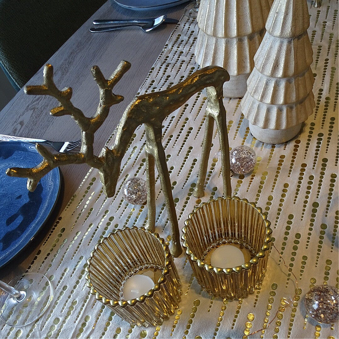 Het gouden randje zorgt voor een verfijnde uitstraling en vangt het kaarslicht op een elegante manier, wat zorgt voor een zachte, sfeervolle gloed. Perfect voor gezellige avonden, feestdagen of als verfijnd detail in je dagelijkse interieur.