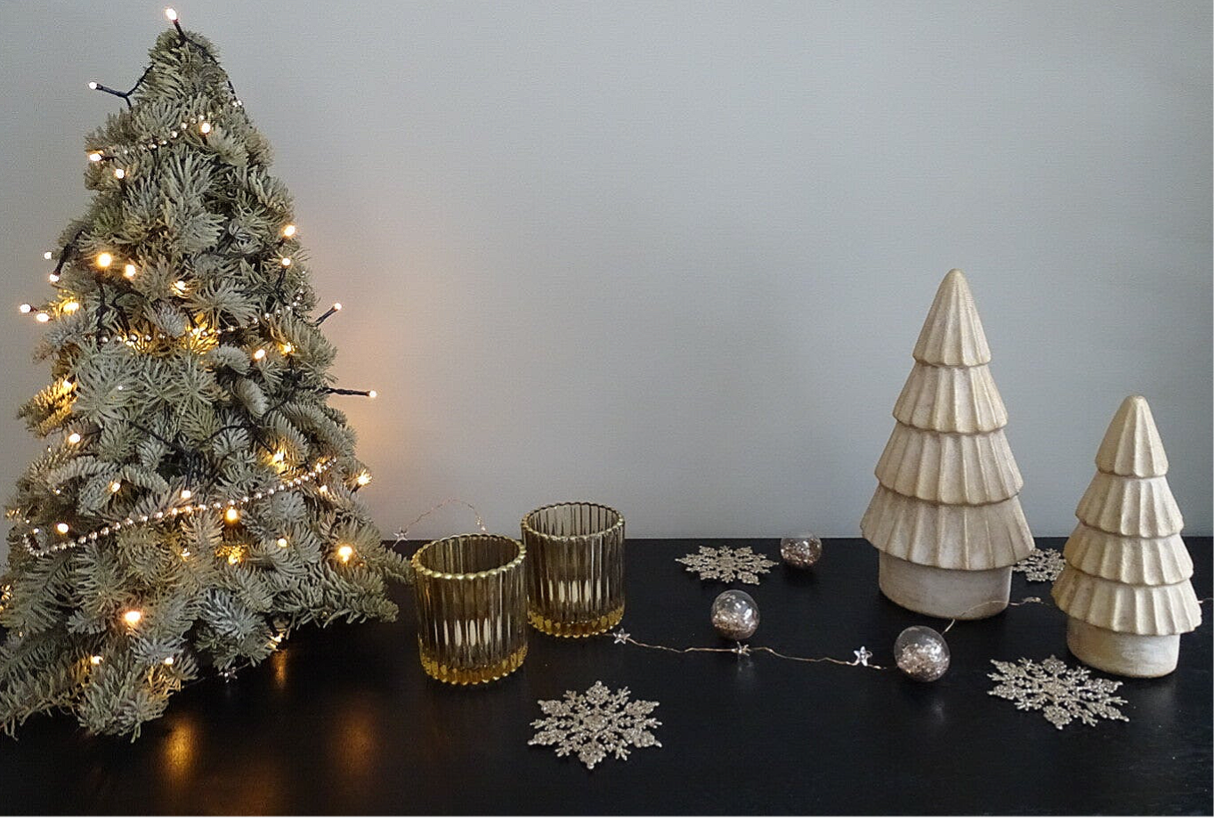 Stijlvol kerstboom ornament in een warme beige kleur met een elegante gouden touch. Het formaat maakt dit ornament perfect als eyecatcher op een dressoir, tafel of schouw. Tijdloos, sfeervol en perfect voor een chique kerstdecoratie.