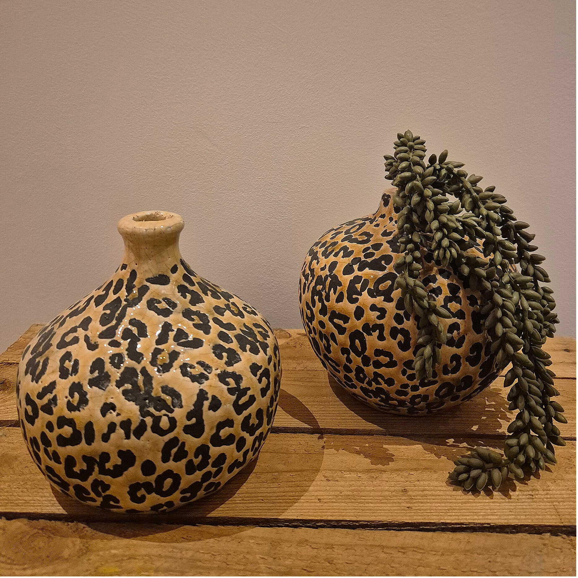 Deze toffe panter pot bewijst dat je met een klein item toch een groot statement kunt maken. De opvallende panterprint in beige en zwart geeft een speelse, stoere touch aan je interieur. Perfect als sierpot voor een hangplantje, droogbloemen of gewoon als decoratief object op een plank, bijzettafel of vensterbank.