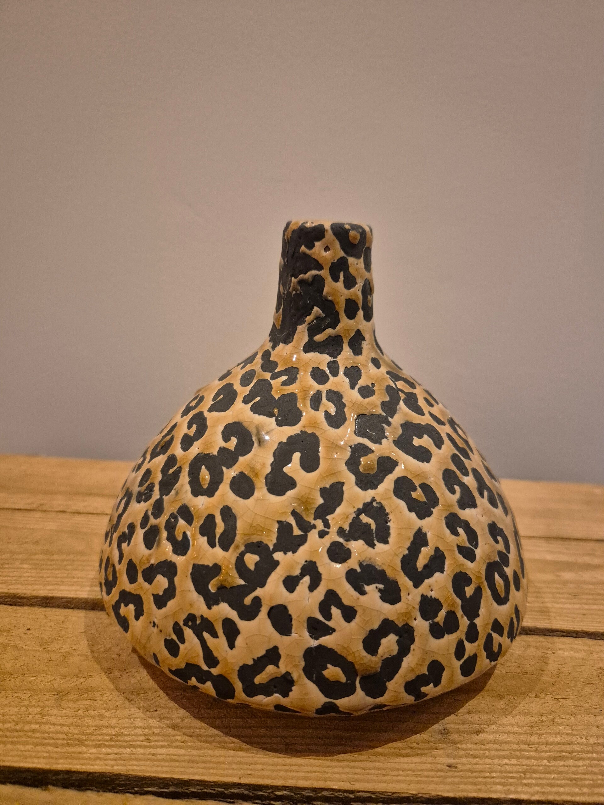 Deze kleine panter pot bewijst dat je met een klein item toch een groot statement kunt maken. De opvallende panterprint in beige en zwart geeft een speelse, stoere touch aan je interieur. Perfect als sierpot voor een hangplantje, droogbloemen of gewoon als decoratief object op een plank, bijzettafel of vensterbank.