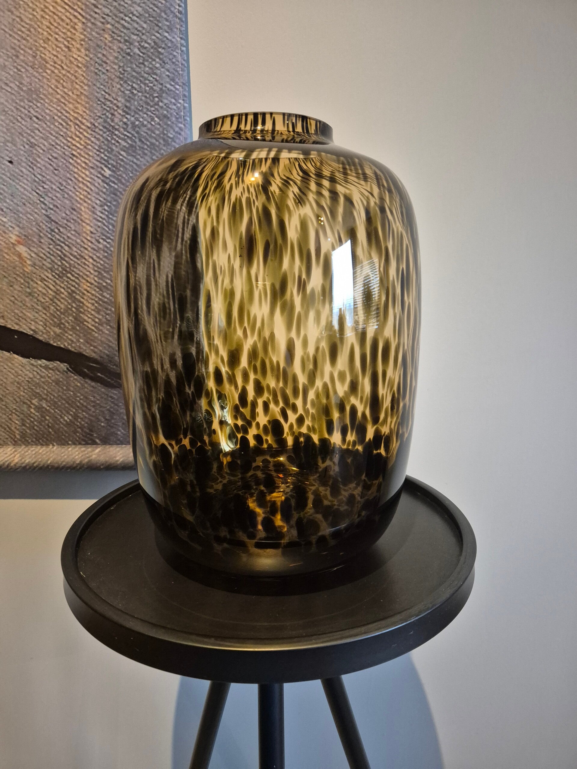 Deze glazen vaas met bruine cheetah print is een echte eyecatcher in ieder interieur. De combinatie van transparant glas en een stijlvolle dierenprint geeft de vaas een luxe en moderne uitstraling. Perfect voor wie houdt van een trendy, warm en speels accent in huis.