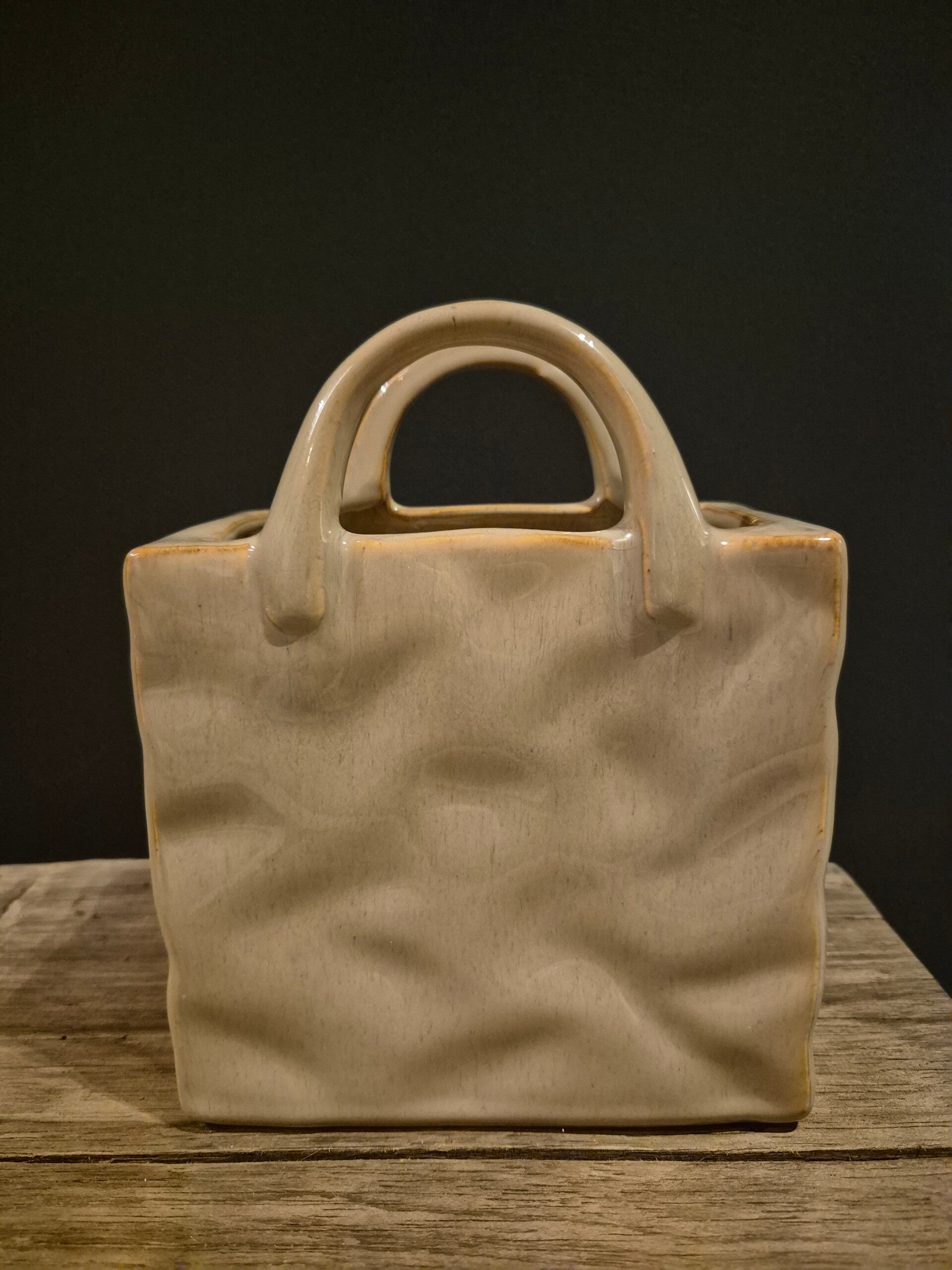 Deze leuke vaas in de vorm van een tas is perfect om tulpen stijlvol in te zetten. De zachte beige kleur zorgt voor een warme en rustige uitstraling en past moeiteloos in een modern, Scandinavisch of landelijk interieur.