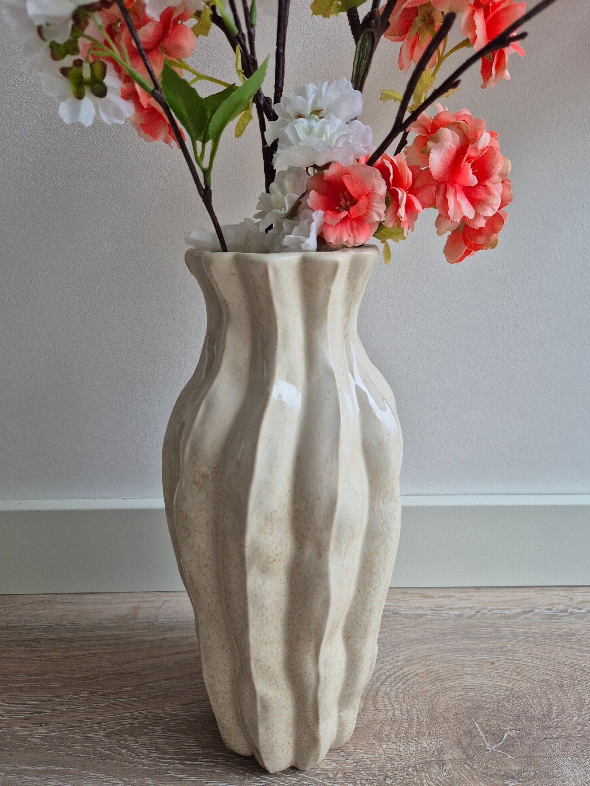 Vaas Jolie is een stijlvolle beige aardewerk vaas die perfect past in een modern, Scandinavisch of landelijk interieur. De zachte beige kleur en de matte afwerking geven deze keramieken vaas een warme, natuurlijke uitstraling. Dankzij het tijdloze design is vaas Jolie ideaal als decoratieve vaas op tafel, dressoir of in een open kast.