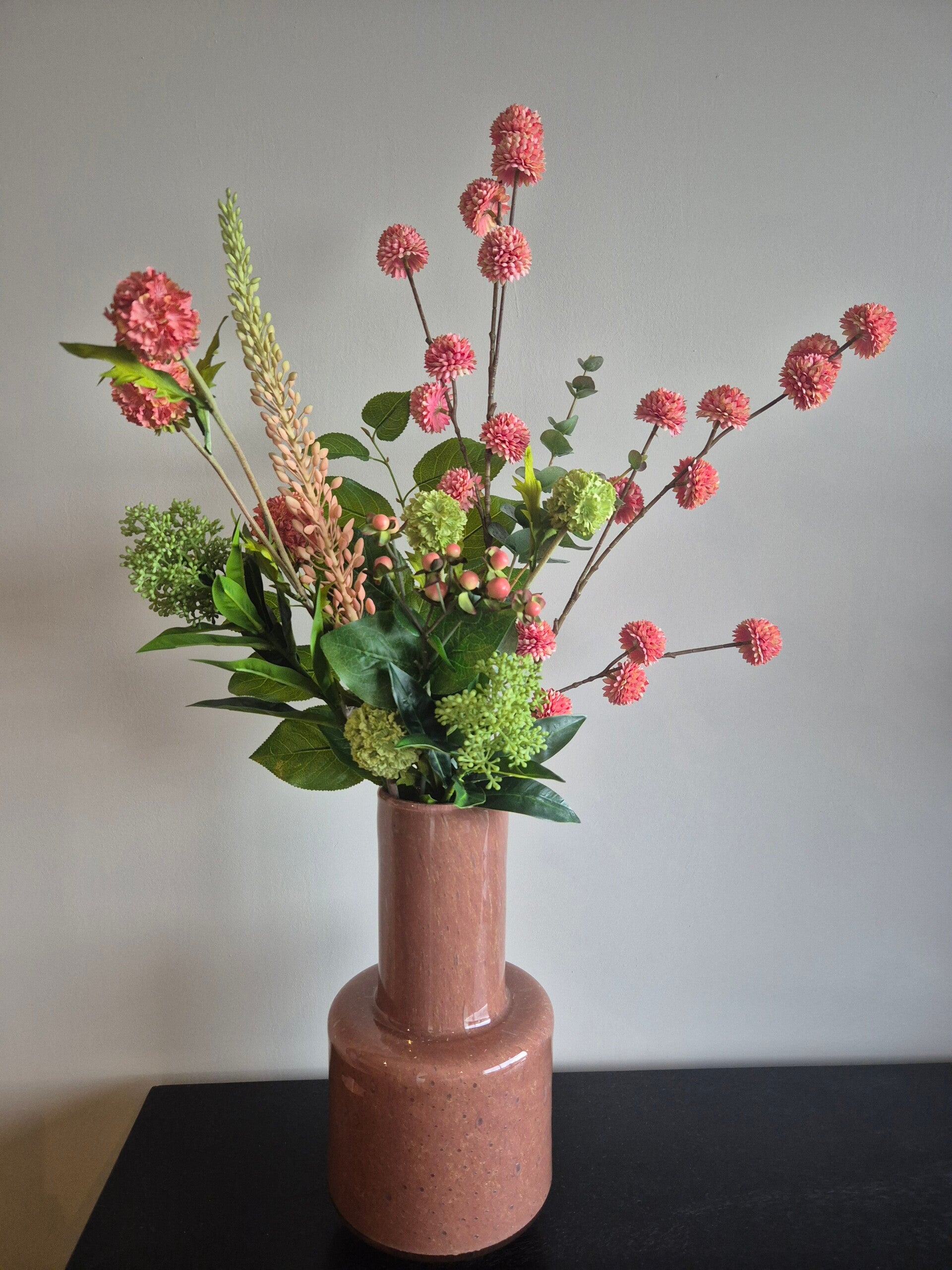 Door de zachte kleuren is dit type boeket ideaal als decoratie op de eettafel, salontafel of in de hal. Het brengt niet alleen kleur in huis, maar creëert ook een rustgevende en uitnodigende sfeer.